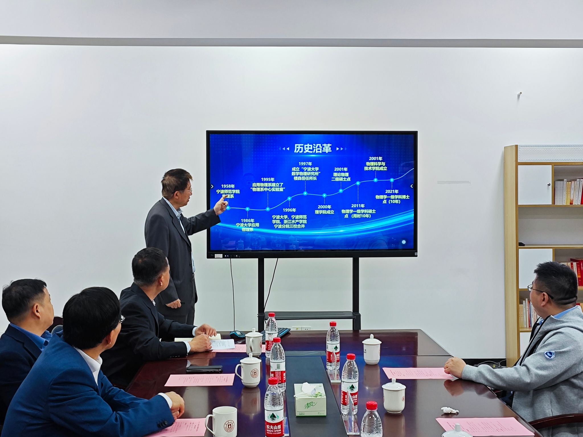 蔡校长对赵政国等一行的到来表示热烈欢迎,感悟了来宁波大学工作一年多以来的心路历程,表示自己也是博彩导航 的一员,并介绍了学院的学科专业、发展历程、办学特色、人才培养、博士点建设、博士后科研流动站等情况,他表示在座的院士专家都是物理学科的大学者大先生,在各自领域都取得了非常大的成就,多年来也一直关心着宁波大学物理学科,可以借此机会相互探讨、调研互动,共同推动宁波大学物理学科的建设与发展。随后,崔田院长结合PPT向与会专家汇报学院物理学科建设情况,他从历史沿革、学科概况、师资队伍建设、科学研究、建设目标及举措等五个方面全方位介绍了宁波大学物理学科专业在当前全国物理学界的地位、级别、影响力、优势与劣势等,以及学校对物理学科发展的重视与支持。