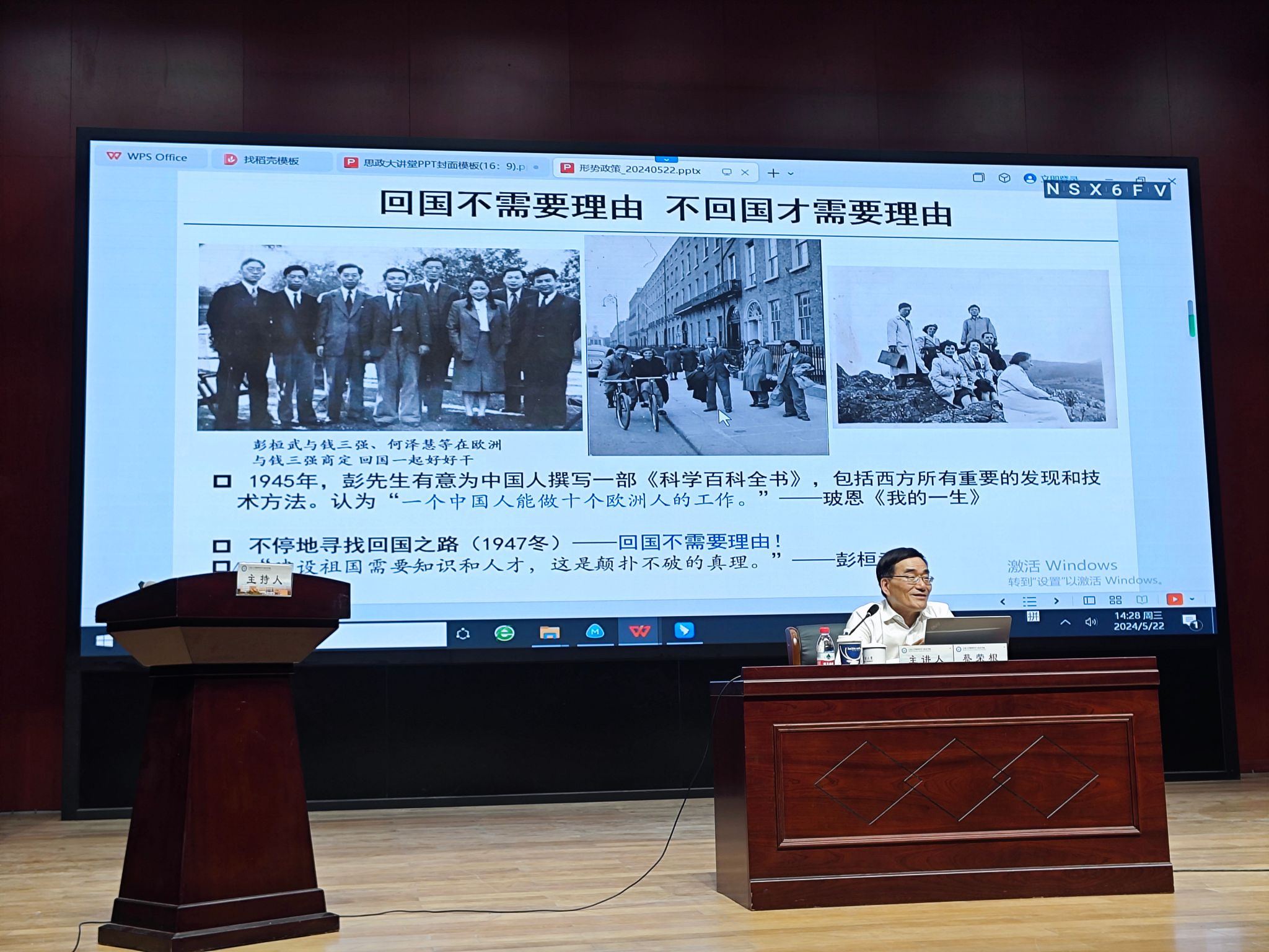 5月22日,校长蔡荣根院士在忻元甫报告厅以“弘扬科学家精神——以彭桓武先生为例”为主题,为博彩导航 和阳明学院440余名师生讲授“形势与政策”课。