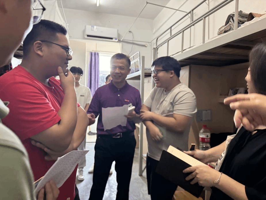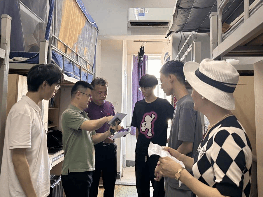 走访过程中,学院党政领导不仅关心新生们的大学生活适应情况,还细心地为他们介绍寝室安全、寝室管理以及学校的各项规章制度。学院党委书记朱学庆鼓励新生们与室友营造和谐友爱的寝室关系,积极主动地融入大学生活,充分利用学校提供的各种资源,努力提升自己的综合素养。 同时,他也强调学院将持续为同学们提供优质的教学资源以及贴心的生活服务,助力每一位新生的健康成长。