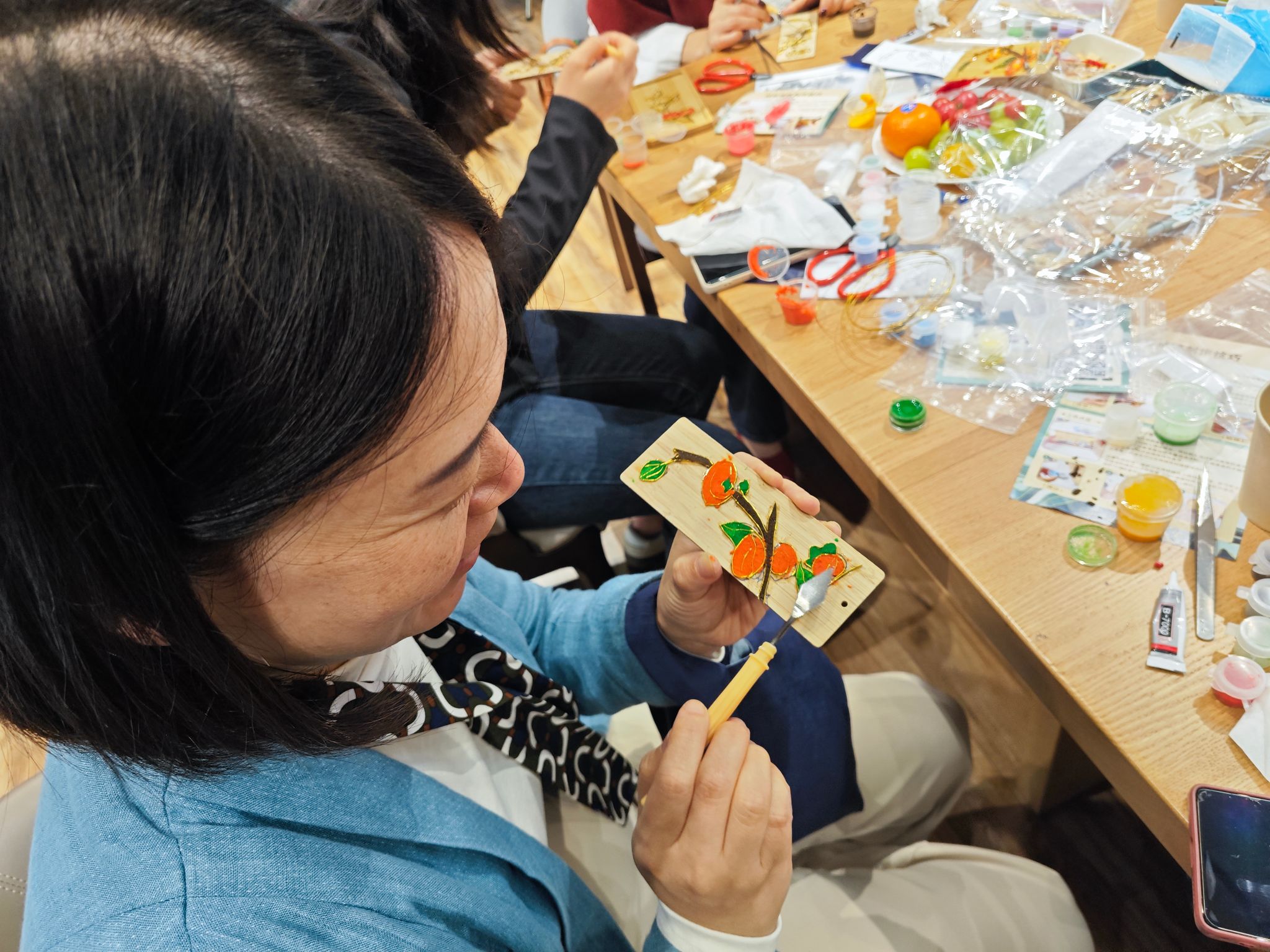 最后的手工互动环节更是将活动氛围推向高潮,导师和学生们在专门指导老师的示范下,组队参与了“柿柿如意”掐丝书签制作。每位参与者亲手设计并制作的书签,不仅象征着对未来美好生活和科研成果的期许,更在过程中增进了师生之间的沟通与理解。活动结束后,大家纷纷展示自己的作品,现场充满了欢声笑语。