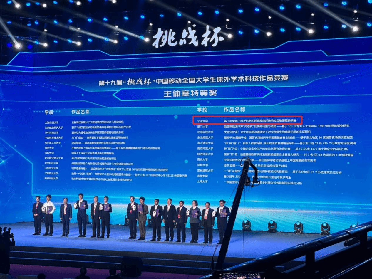 10月31日至11月3日,第十九届“挑战杯”全国大学生课外学术科技作品竞赛终审决赛在南京大学举行,宁波大学在此次竞赛中首次进入全国前十位,居浙江省第一。