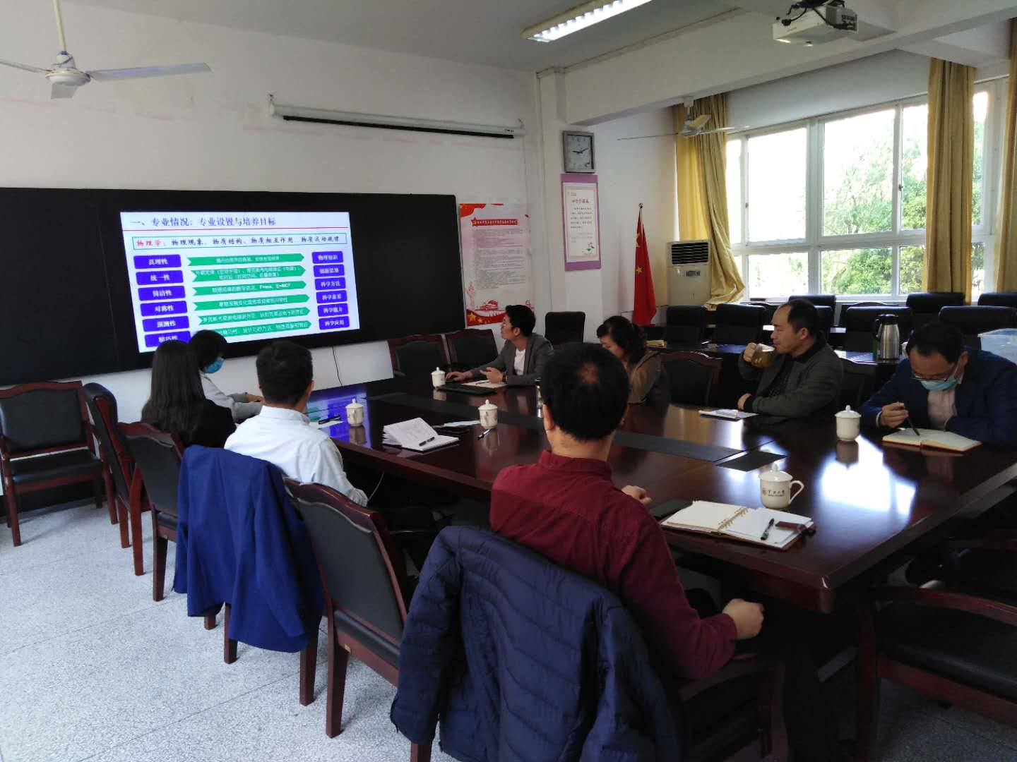 会上,教学副院长楼慈波介绍了物理学院的基本情况,从专业建设,教学成果奖的培育,教学经费投入,课程改革和实践等方面做了介绍;接着,各系主任介绍了专业建设中的现状困难和下一步的计划;最后,教务处领导对学院提出的问题进行了解答,并对学院的下一步专业建设和人才培养提出了建设性的意见,双方进行了深入的讨论。