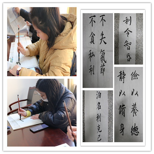 学院还面向全体师生党员进行了清廉家风座右铭征集活动,截至目前一共征集到30余条座右铭和6则优良家风故事,并在认真筛选后,请书法特长的本科生、研究生合作书写部分优秀座右铭,将这些书法作品在全院进行了展示。在这个过程中,同学们亲身创作和参与到廉洁文化的宣传教育中来,进一步学廉达到知廉,廉政意识也春风化雨般融入思想政治教育之中。