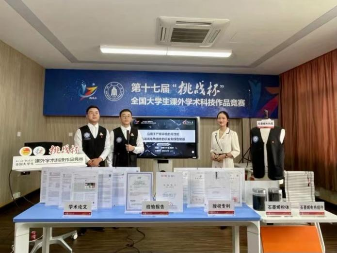 2022年3月26日至28日,在由共青团中央、教育部、中国科协、中国社会科学院、全国学联、四川省人民政府共同主办的第十七届“挑战杯”全国大学生课外学术科技作品竞赛完成终审决赛中,博彩导航王刚、刘鹏、刘小娣老师指导的学生王梓豪、张金秋、李莉团队作品《应用于严寒环境的高性能石墨烯电热组件的研发和绿色制备》从全国400个国赛决赛团队中脱颖而出,继获得省赛特等奖之后,再次荣获国赛二等奖,创造了博彩导航“挑战杯”全国大学生课外学术科技作品竞赛历史最好成绩!