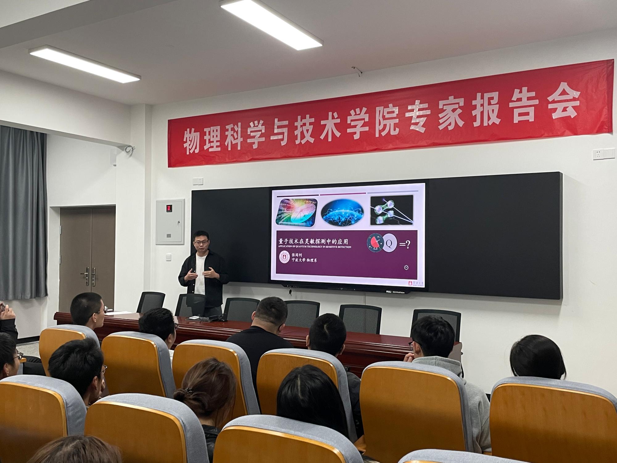 10月24日下午,2022年宁波研究生学术节专家报告会在龙赛理科楼北楼314会议室顺利举行。宁波研究生学术节专家报告会由宁波大学研究生工作部主办,宁波大学物理学院研究生会承办。本次专家报告会有幸邀请到了张闻钊老师作为主讲人。张闻钊老师为大家作题为《基于纠错码的量子照明方案》的学术报告。物理学院研究生代表和本科生代表共40余人参加了这次报告会。