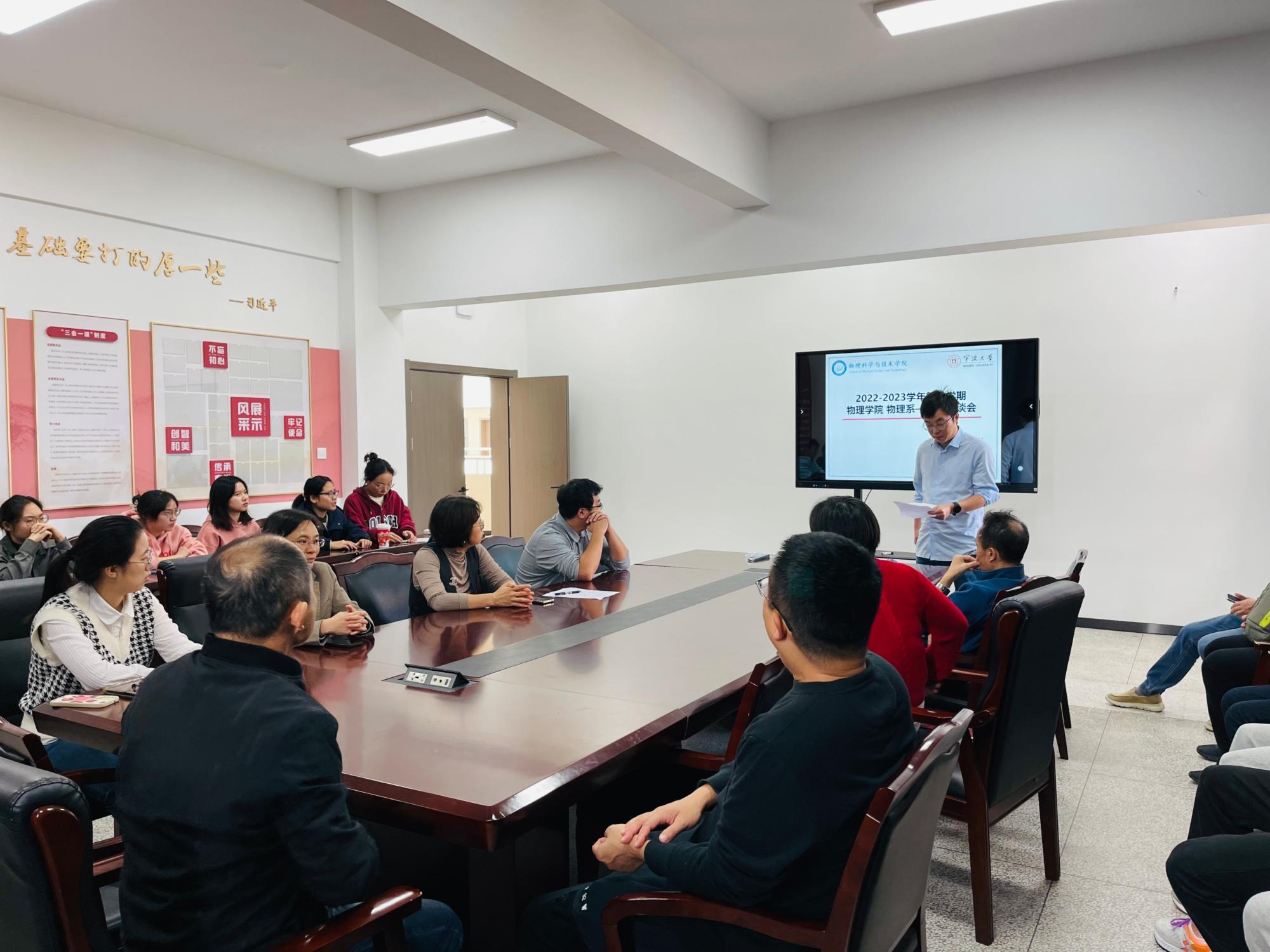 119日中午,物理系在龙赛理科楼北楼228会议室顺利举行2022-2023学年第一学期期中师生座谈会。物理学院执行院长段香梅、教学副院长楼慈波、各任课教师、教务办和学工办老师以及20余位物理系学生代表参加了此次会议。会议由系主任汤世伟主持。