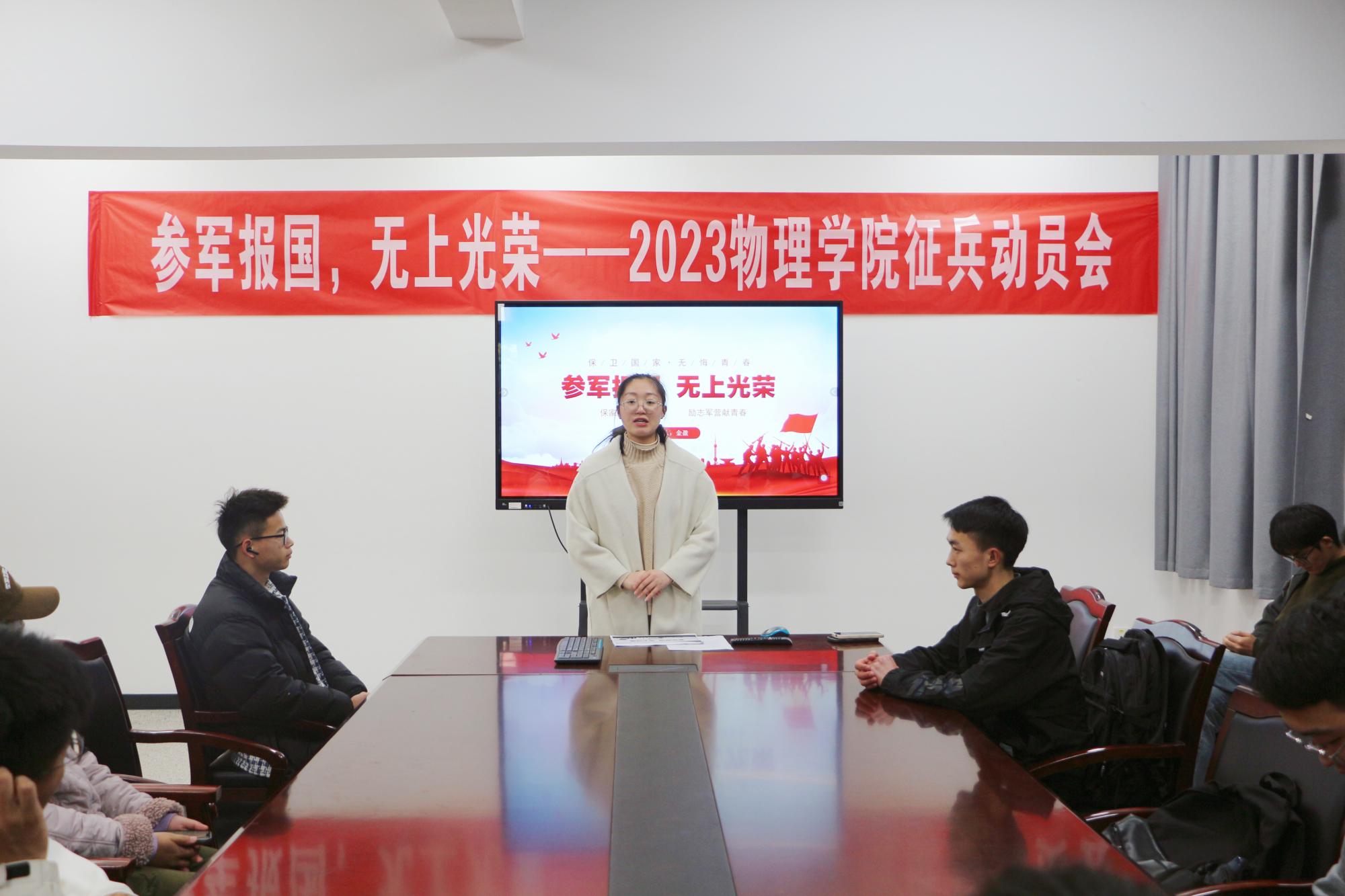 3月29日,博彩导航-电子博彩导航 在龙赛理科楼228会议室举办2023年第一次征兵动员会,本次动员会邀请退役学生李军同学参会。学院各年级共计40余位同学到会,会议由辅导员金盈主持。