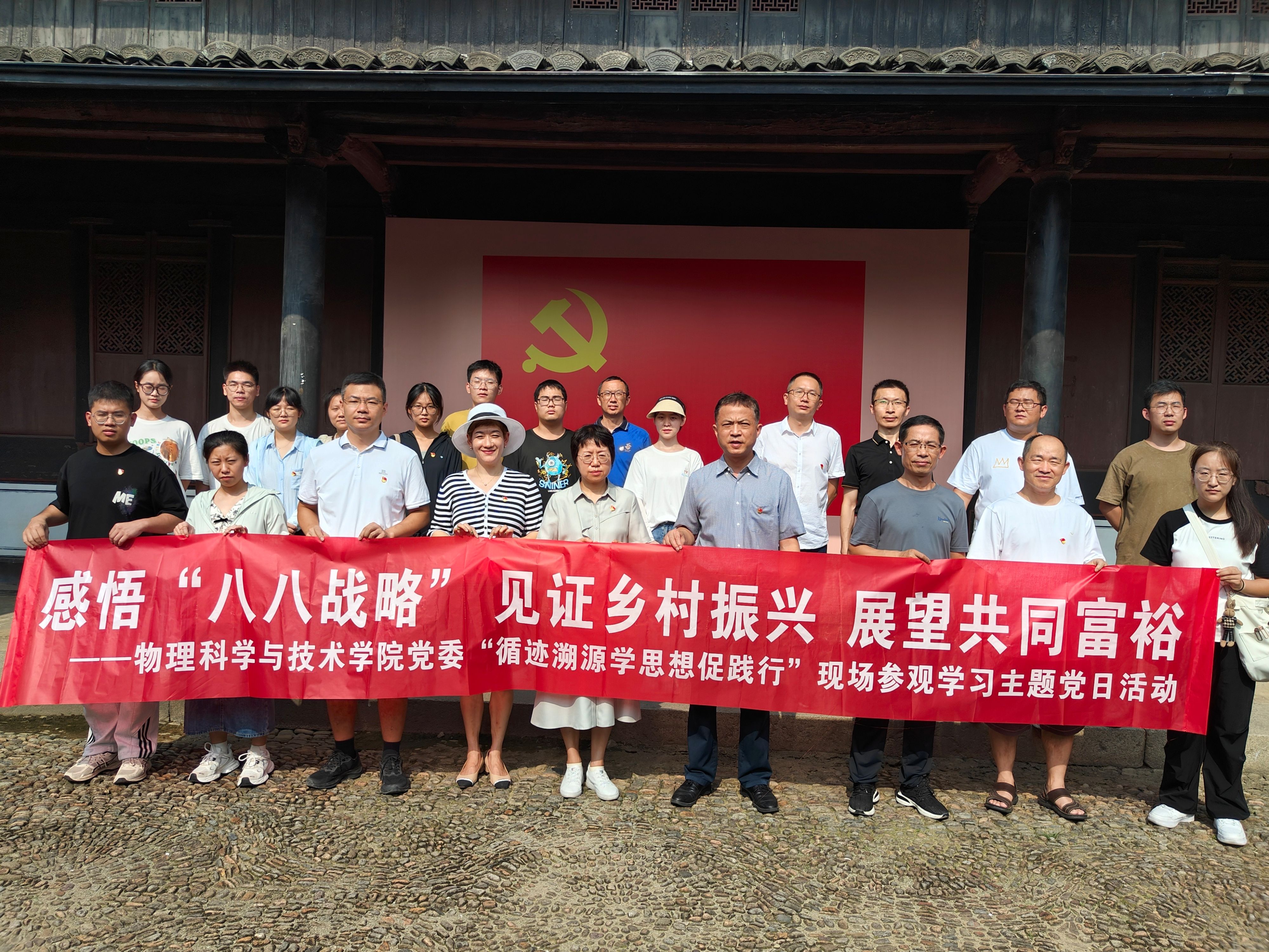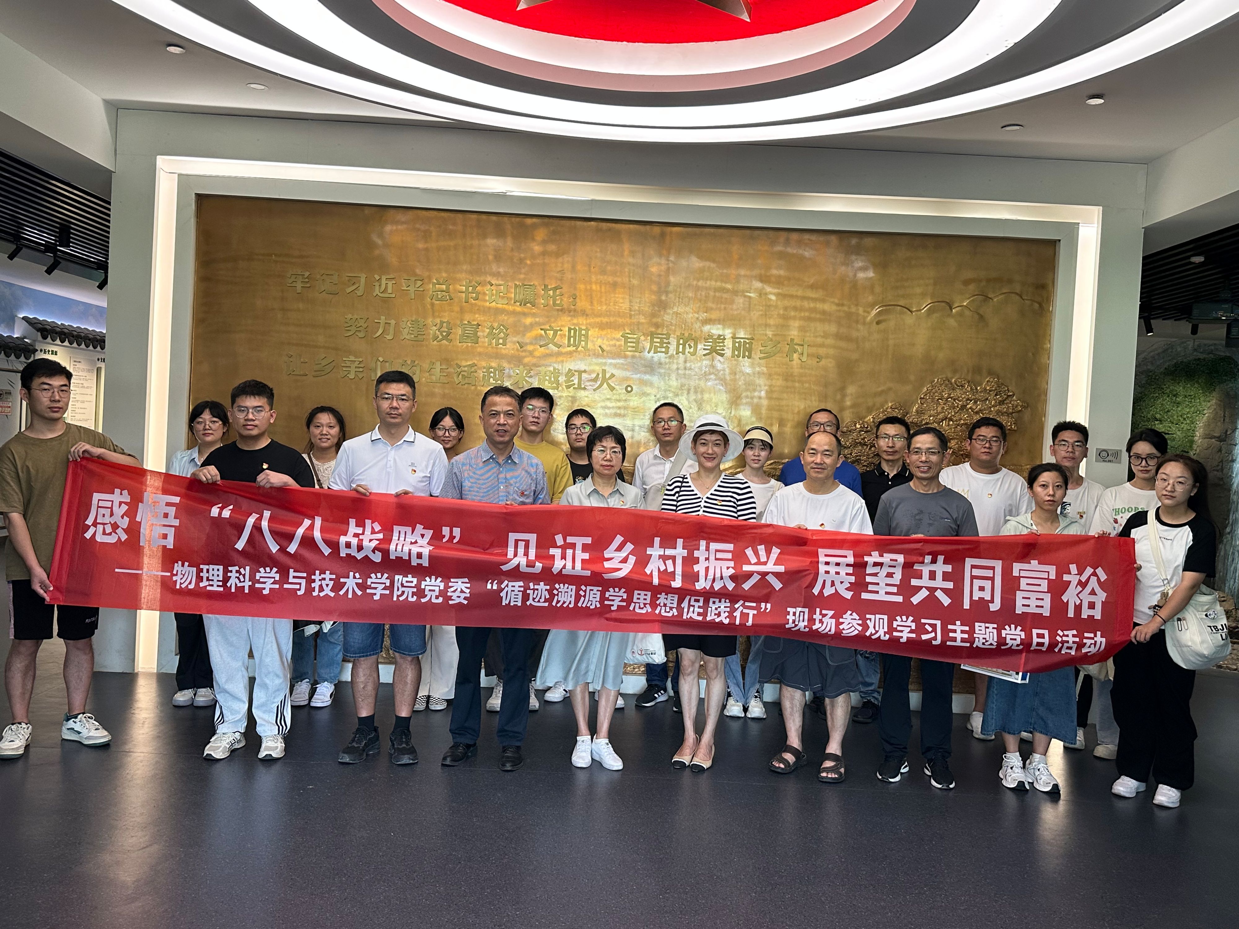 为进一步深入学习贯彻习近平新时代中国特色社会主义思想,引导师生党员重走习近平浙江足迹,在循访中体悟“八八战略”实施20年来的浙江实践,感受习近平新时代中国特色社会主义思想的真理伟力,凝聚奋进中国式现代化赶考路的磅礴力量,8月8日,博彩导航 党委赴余姚市梁弄镇横坎头村开展“循迹溯源学思想促践行”学习活动暨“感悟‘八八战略’,见证乡村振兴,展望共同富裕”主题党日活动,走进新时代文明实践站、余姚市红廉馆、浙东抗日根据地旧址群、“浙东红村”风貌区等地,实地体验“红色引领、绿色发展”的乡村振兴之路,物理系教师党支部、行政教工党支部、研究生第一党支部的师生党员参加。
