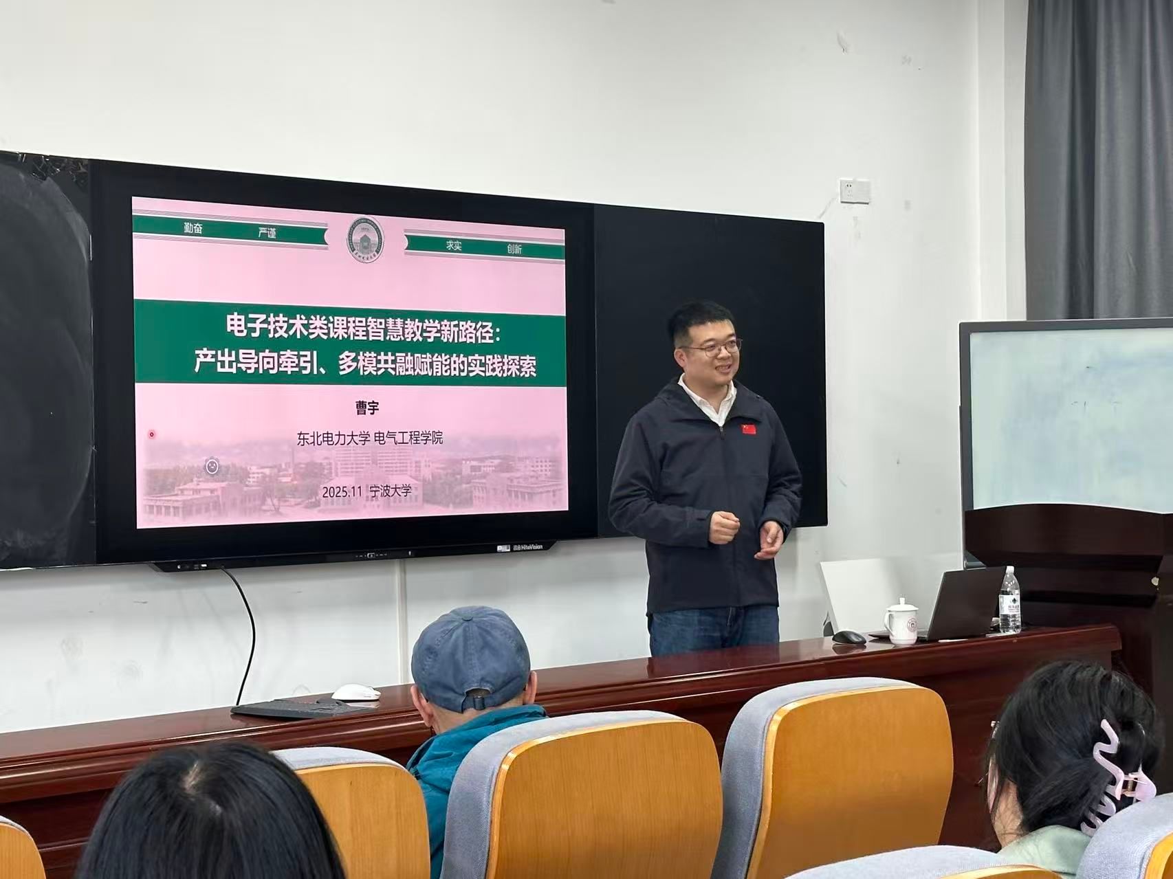 11月19日,博彩导航 特邀东北电力大学电气工程学院曹宇教授,于博彩导航举办了一场题为“电子技术类课程智慧教学新路径:产出导向牵引、多模共融赋能的实践探索”的专题报告。本次活动由教学副院长胡子阳主持,微电子系主任及近三十位教师共同参与。