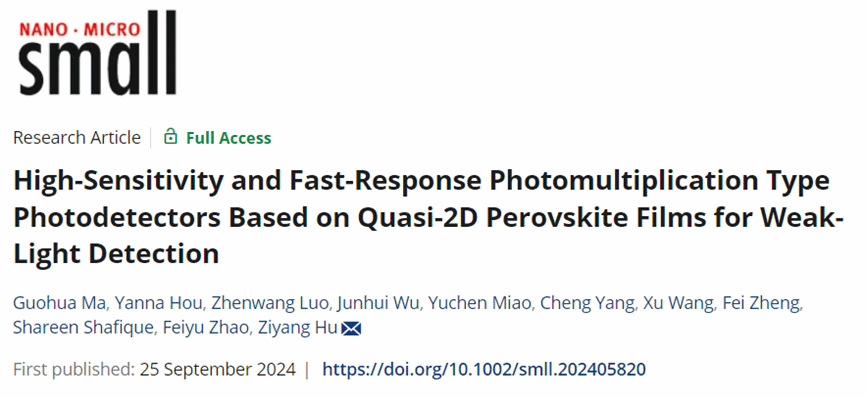 胡子阳教授领衔的课题组在准二维钙钛矿光电探测器领域取得了显著的科研成果。该团队的研究论文 “High-Sensitivity and Fast-Response Photomultiplication Type Photodetectors Based on Quasi-2D Perovskite Films for Weak-Light Detection” 在国际知名学术期刊《Small》上发表。论文的第一作者是博彩导航