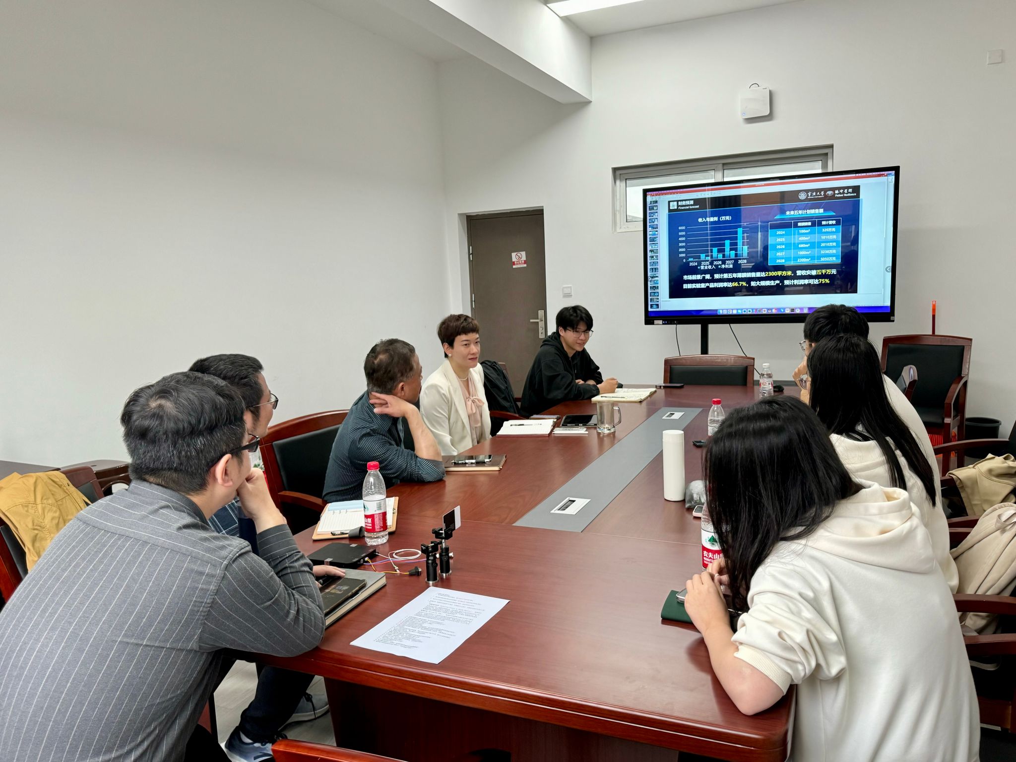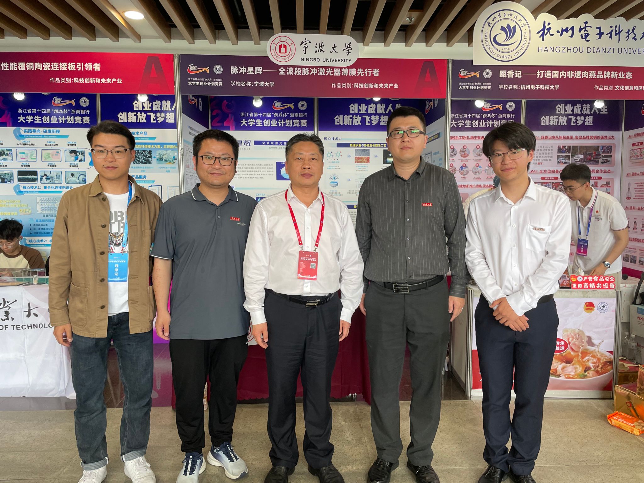 挑战杯备赛的漫漫长夜里,灯火通明的实验室里,项目成员们并肩作战,键盘敲击声、讨论声交织成一首奋斗的交响乐。每一个难题的攻克,都离不开老师的悉心指导和团队成员们的汗水院党委书记朱学庆、副书记刘小娣在团队备赛、出征等过程中多次看望、指导团队,仔细了解项目准备情况并提出宝贵意见。这些汗水与坚定,见证了师生们的执着追求,也铸就了属于师生们的辉煌时刻。在挑战杯的舞台上,团队以出色的实力与独特的创意,绽放出耀眼的光芒。从项目策划到现场答辩,每一步都凝聚着团队的智慧与汗水。团队以激昂的斗志和精湛的表现,征服了评委。值得一提的是,本团队还作为宁波大学唯一代表进行了展位展示,得到了团省委领导、校党委副书记张真柱、校团委书记周星宇的亲切看望和鼓励,展位展示效果好,得到一致好评。