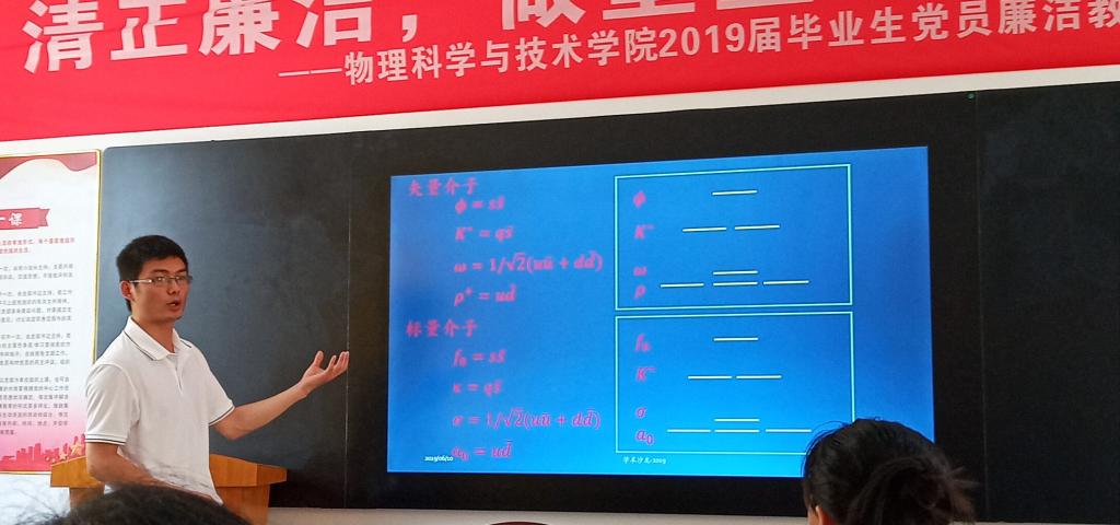 “清正廉洁,做堂堂正正物理人” ——张淼为进一步推进全面从严治党向纵深发展,增强毕业生党员廉洁自律意识,牢记党员宗旨,6月2日,博彩导航