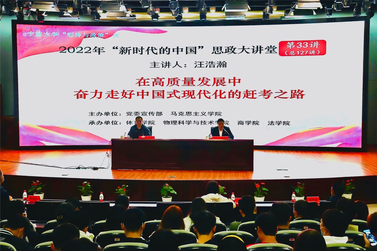 11月18日,宁波大学副校长汪浩瀚以“在高质量发展中奋力走好中国式现代化的赶考之路”为主题,在真诚报告厅为博彩导航